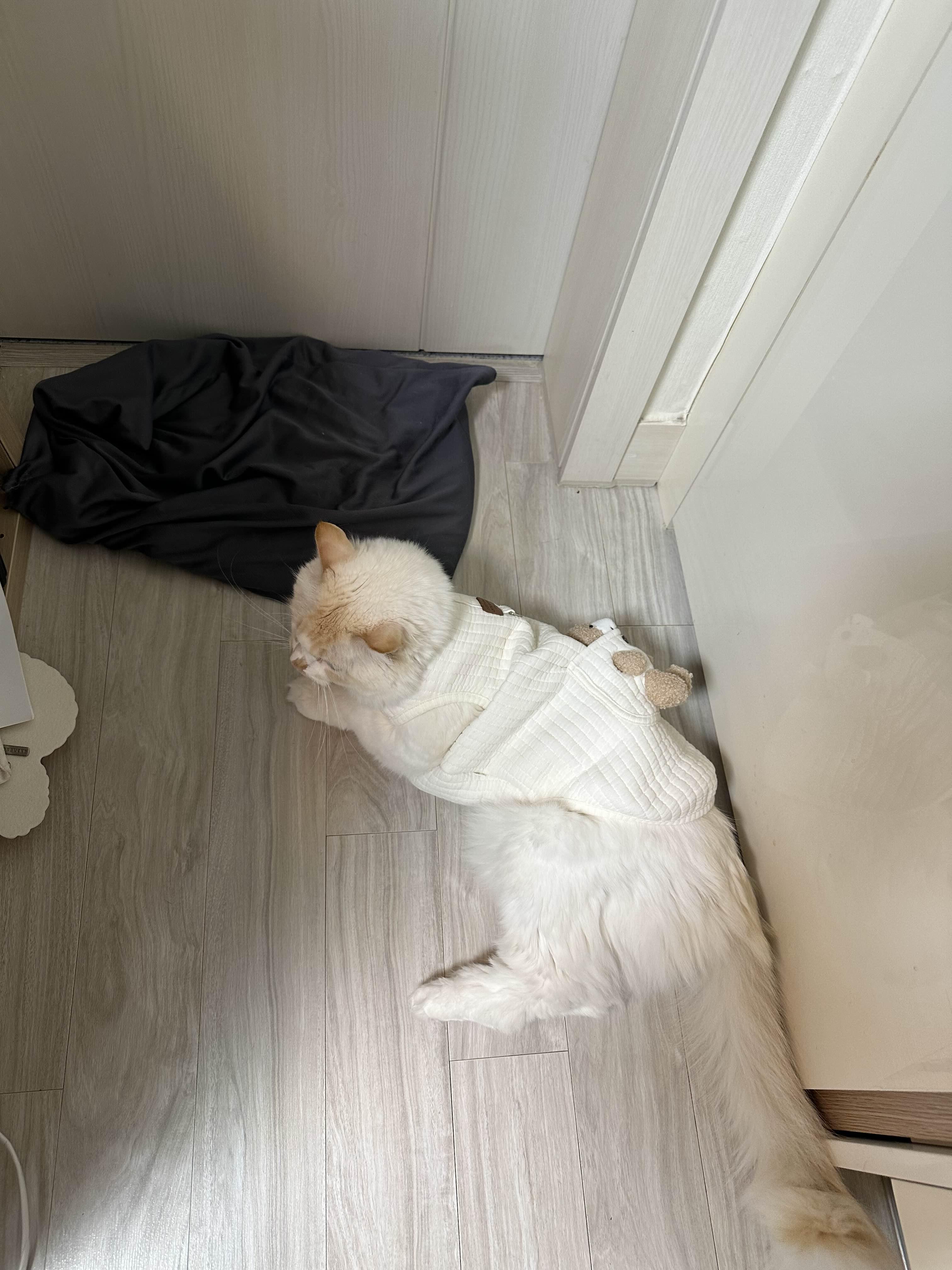 이번에 겨울맞이로 구매한 고양이 옷이에요.