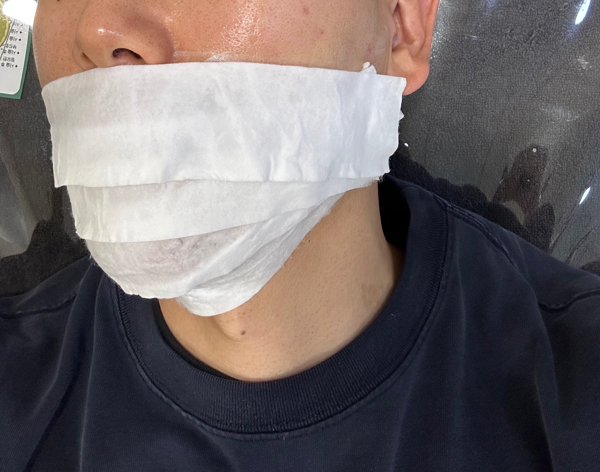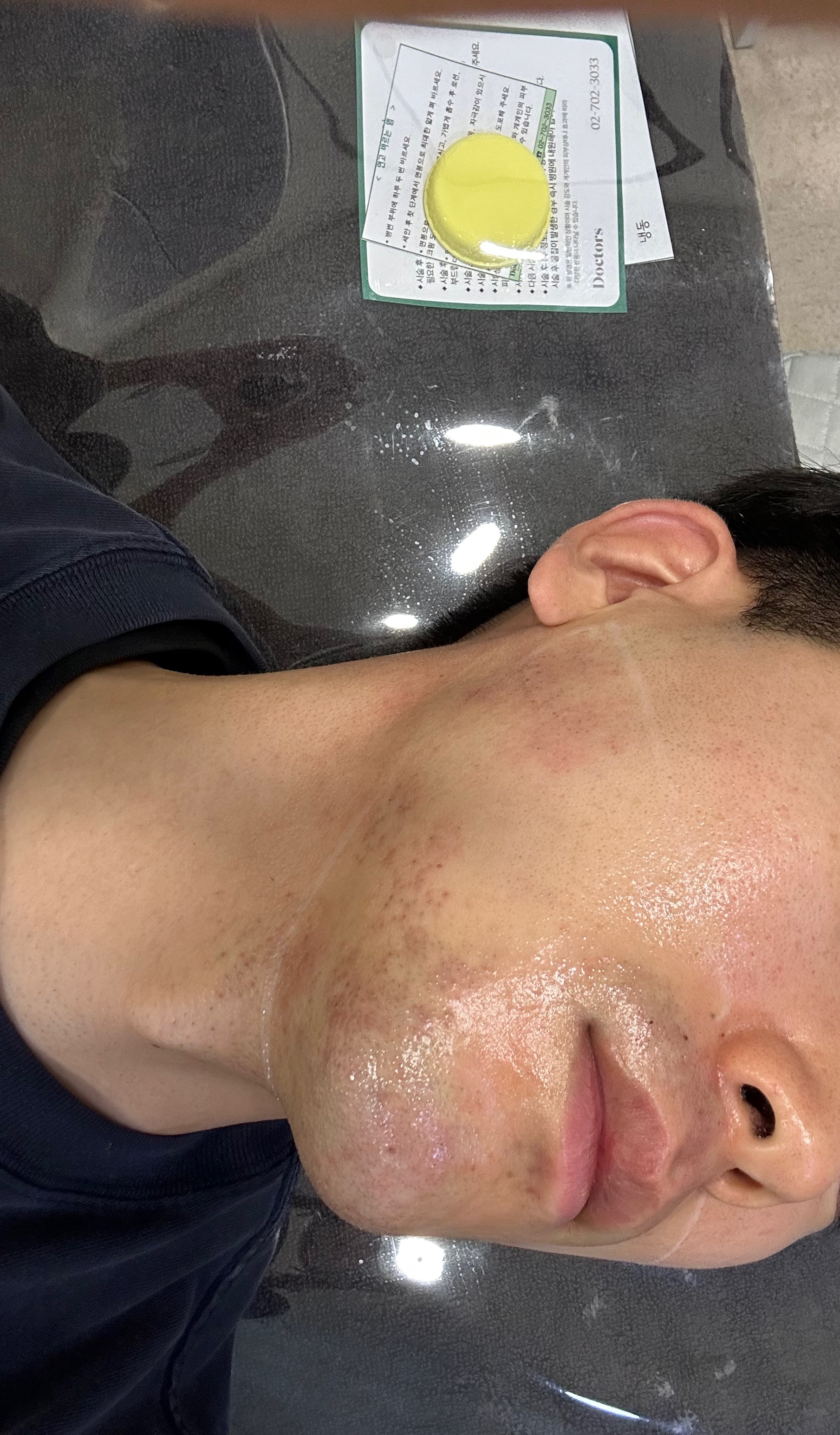 진정크림이 묻은 천을 덮고 한동안 진정시키고 시술은 그렇게 끝이 났어요.