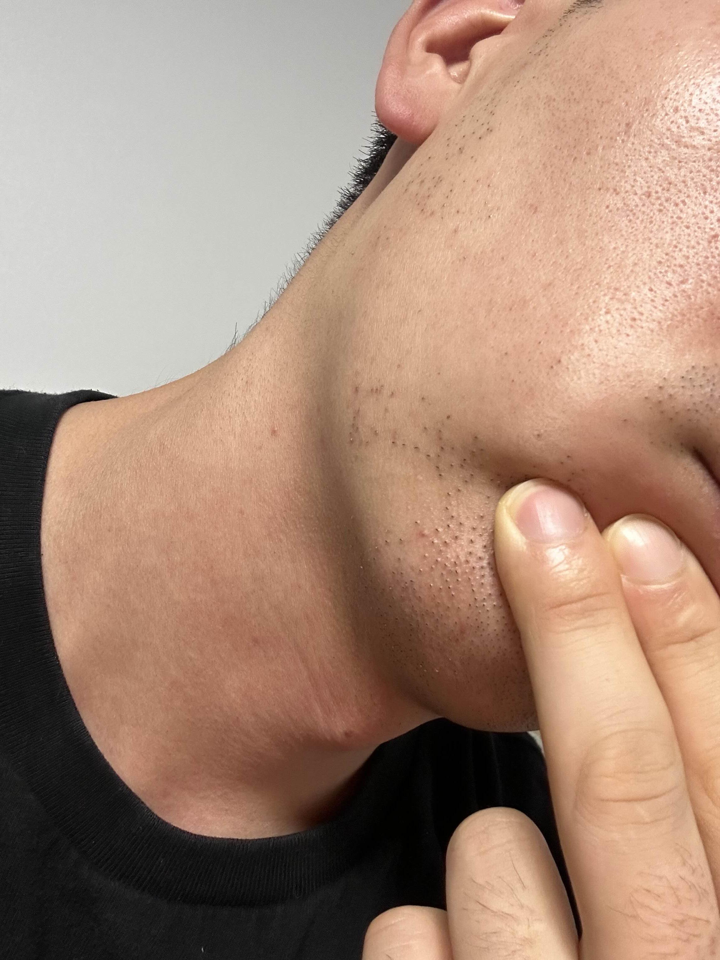 살이 그나마 있는 부위인 '턱 아래 살 있는 부분' 이 그나마 덜 아픈데..
