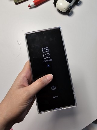 1. 그립톡이 있어서 휴대전화를 안정적으로 잡을 수 있음.