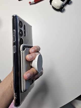 갤러플 카드지갑 케이스는 그립톡이 함께 있는 케이스로, 휴대전화를 안정적으로 잡고 카드를 수납할 수 있어 매우 편리합니다. 또한 자력이 강하여 미끄러짐 없이 안전하게 사용할 수 있으며, 손목에 무리가 덜 가는 사용감도 장점입니다. 다만, 카드를 두 장 이상 넣을 경우 약간 두꺼워질 수 있고, S펜 사용 시 분리해야 하는 불편함이 있습니다.