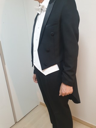 단점: 연미복 셔츠가 셋트로 주문할 수 있는 옵션이 있으면 좋겠다, 보타이 색상 선택 가능하면 더 편할 것
