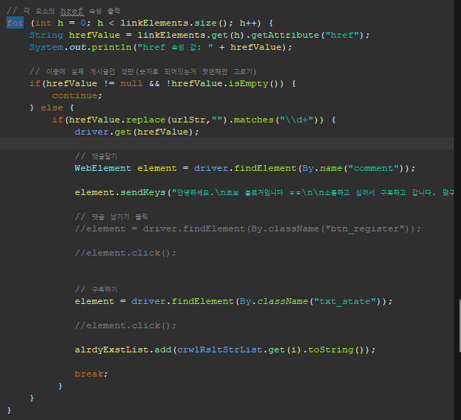 위와 같이 hrefValue를 가져 왔을 때, 해당 String이 null인지 체크 후 null이 아니라면, 그 다음 프로세스를 진행해도록 해야 문제가 발생하지 않는다.