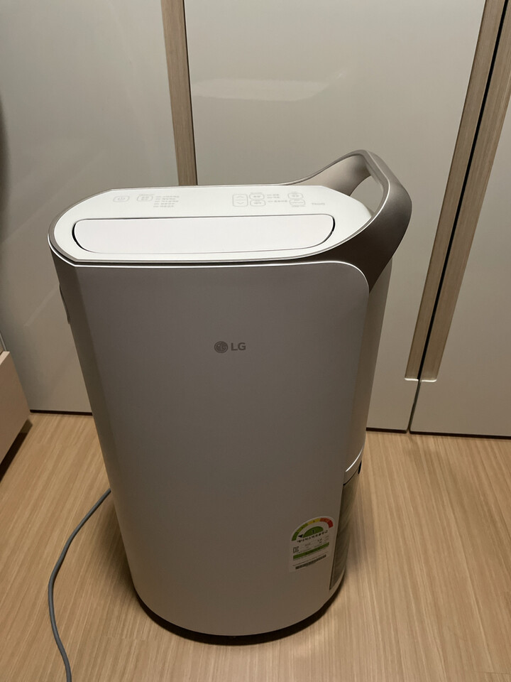 게 보였습니다. 4. 사용 후기 신발건조와 배수 호스가 함께 제공되어 유용하게 사용할 수 있었습니다. 제습기는 습기를 확실히 잘 잡아주고, 소음도 저소음모드까지 있어서 편안한 사용이 가능했습니다. 또한, 미지근한 바람이 나와서 여름에도 사용하기 좋았으며, 버튼 잠금 기능으로 아이가 있는 집에서도 안전하게 사용할 수 있었습니다. 무게가 무겁긴 하지만 부드러운 바퀴로 손쉽게 이동할 수 있었습니다. 또한, Think Q 어플을 통해 외부에서도 제습기를 작동시킬 수 있다는 점이 큰 장점이었습니다. 다만, 물통을 비우는 과정에서 물이 바닥면으로 떨어져서 조금 번거로웠습니다. 그러나 전체적으로 만족스러운 사용 경험이었습니다. 총평 하루도 안되는 시간에 배송이되어 놀랐으며, 생일 쿠폰을 사용하여 저렴하게 구매할 수 있었습니다. 엘지 기사님의 친절한 직배송과 설치도 큰 장점이었으며, 제습기의 기능과 사용 편리성도 매우 우수했습니다. 무광 디자인과 신발건조, 배수 호스 등의 부가 기능 또한 유용하게 사용할 수 있었습니다. 다만 물통을 비우는 과정에서 약간의 번거로움이 있었지만, 전반적으로 만족스러웠습니다. 사용 후기를 작성하는 이유 모델 선택에 있어서 단종 소식과 새로운 기능에 관심이 있었고, 다양한 후기를 참고하고 싶었기 때문에 사용 후기를 작성하게 되었습니다. 특히 제습기의 디자인, 기능, 사용 편리성 등에 대한 다양한 의견을 알고 싶어서 작성한 것입니다.