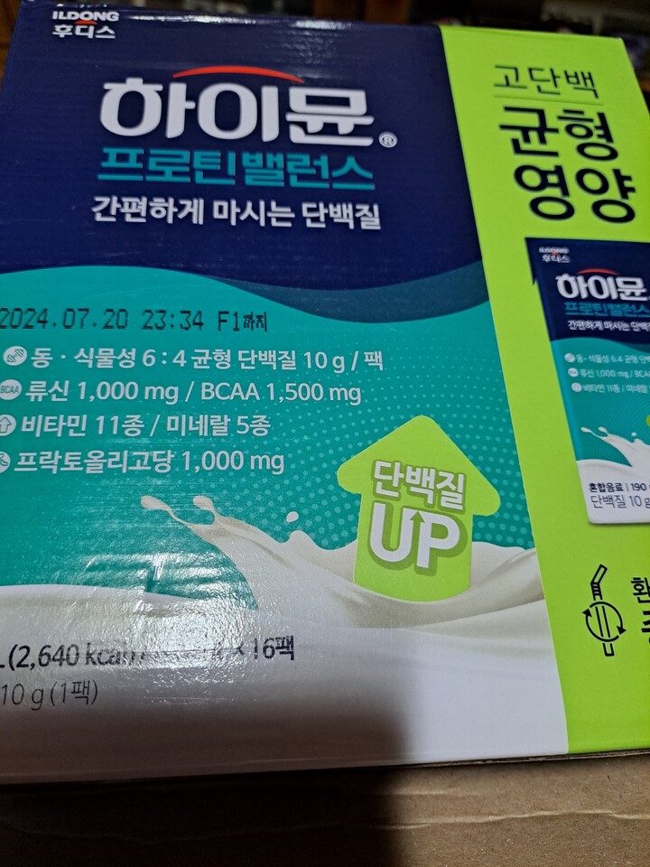 4. 하이뮨을 사용한 후에는 운동하고 빨리 마시도록 노력하고 있다. 하지만 맛이 조금 떱떱하고, 학교 가는 길이나 밥 때가 아닌 중간 중간에 마시기가 좀 불편하다. 그래도 효과는 좋은 것 같고, 배송은 빠르게 왔으며 포장 상태도 좋았다. 그러나 박스 모너리와 박스 손잡이 개선이 필요해 보인다.