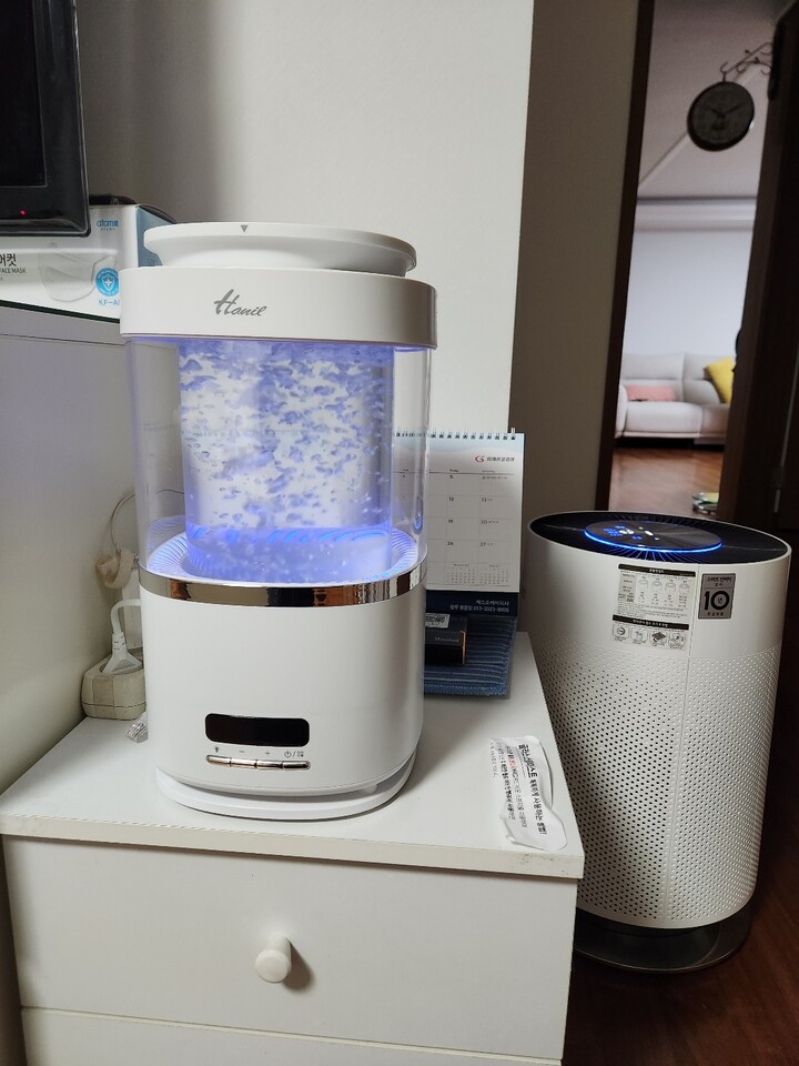 깔끔하고 물이 끓으면 주변도 훈훈한 느낌이랍니다. 그리고 가습 잘되고 좋아요. 초음파 쓰다가 가열식으로 바꿔봤는데 물끓는 소리도 생각보다 잠이 잘 오네요. 가습량 조절도 가능하고 상부물 추가도 가능해서 가성비도 괜찮아요. 또한, 무드등 밝기도 밤에 눈을 부시지 않게 조절되어 편안한 분위기를 연출할 수 있어요. 물론, 기존 가열식 가습기보다는 소음이 적은 편이지만 아직까지 자는 동안 계속되는 물끓는 소리가 방해가 될 수도 있습니다. 그래도 전체적으로는 만족스럽고 사용 후에도 좋은 가습기라고 생각해요.