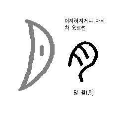 - 둥근 달이 이지러지거나 다시 차오르는 꼴을 본 뜬 상형자이다.